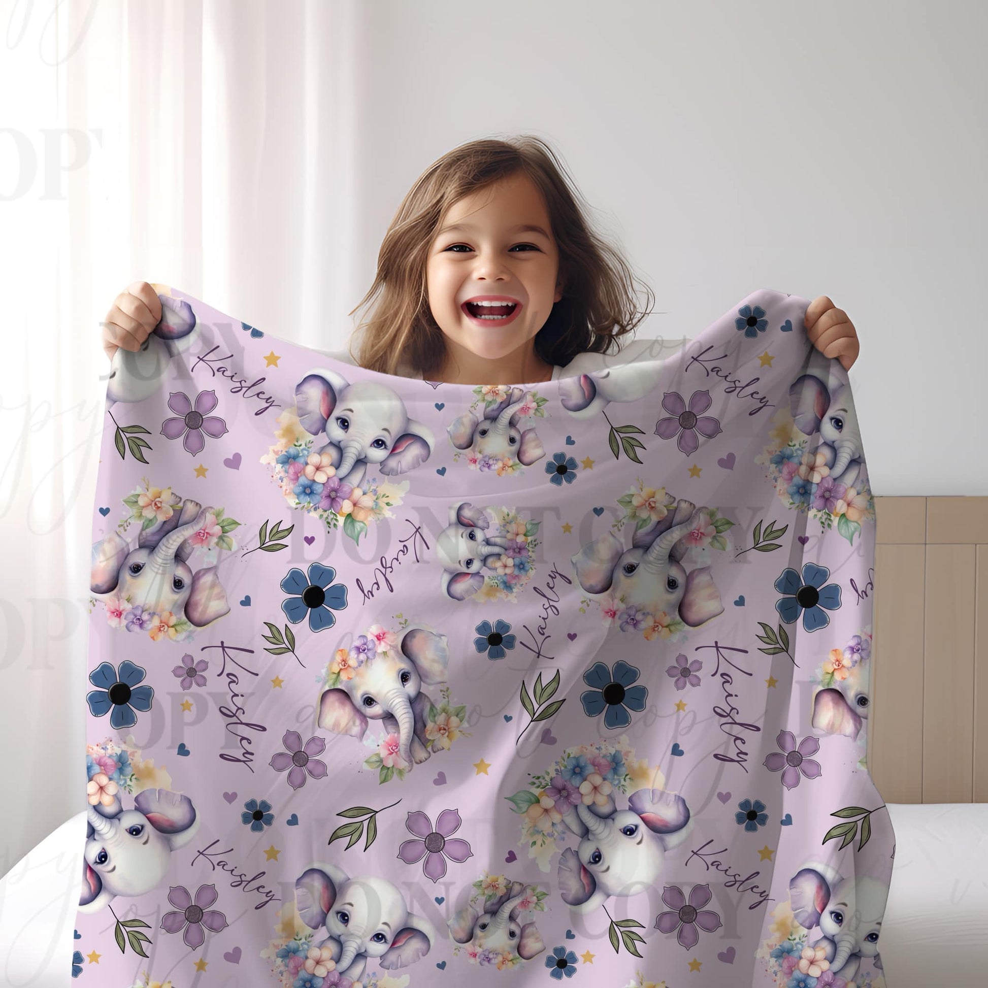 This adorable baby elephant personalized blanket is the perfect addition to any little girl's room or a thoughtful gift for new parents. Choose from 3 different sizes for the perfect fit. Made with soft and cuddly material, it's sure to provide comfort and warmth for your little one.