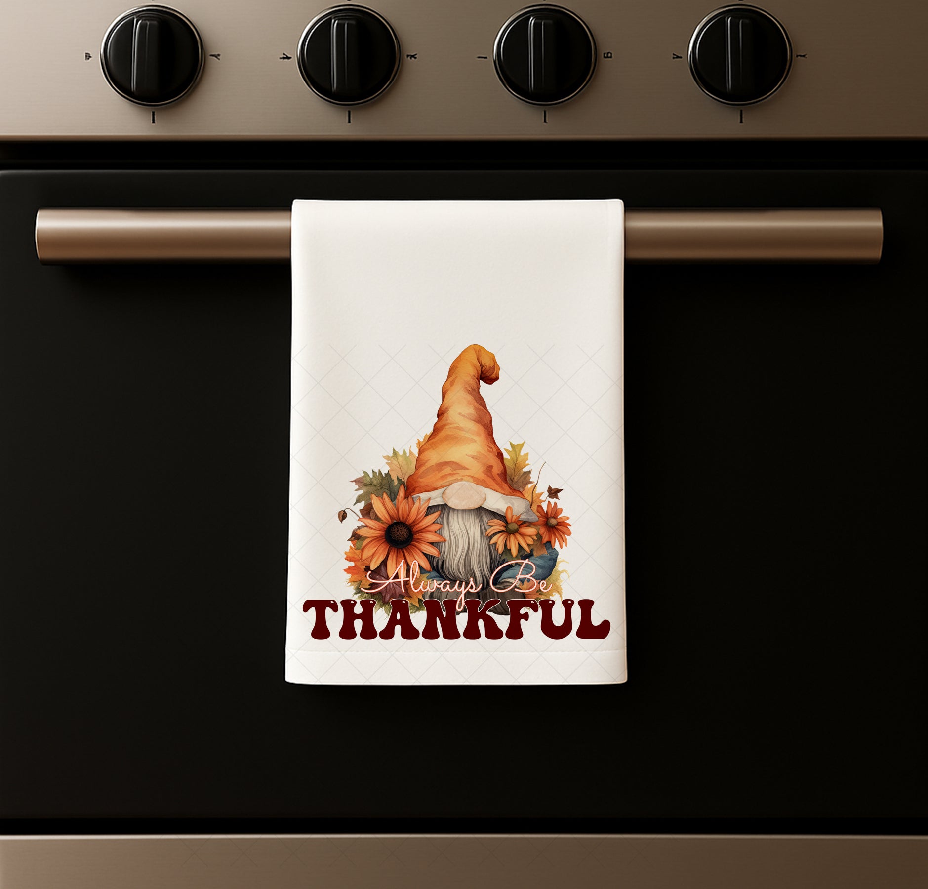 Always Be Thankful Gnome Kitchen Towel – Fall & Thanksgiving Decor (100% Polyester)