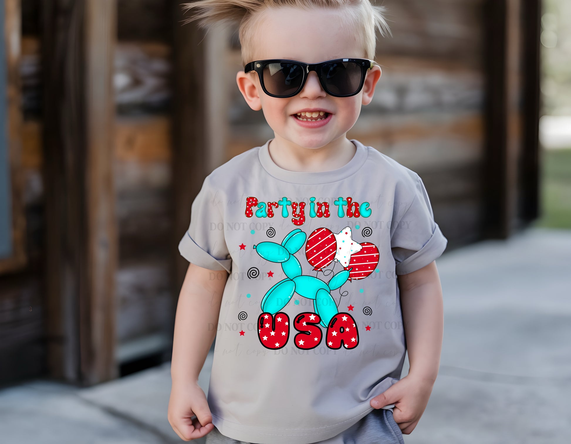 This Boys party in the USA T-shirt is the ultimate addition to your wardrobe. Made with high-quality fabric, this shirt is comfortable and durable. Perfect for any summer party, this shirt features a stylish design that will make your child stand out in the crowd. Get ready to party in style with this must-have T-shirt!