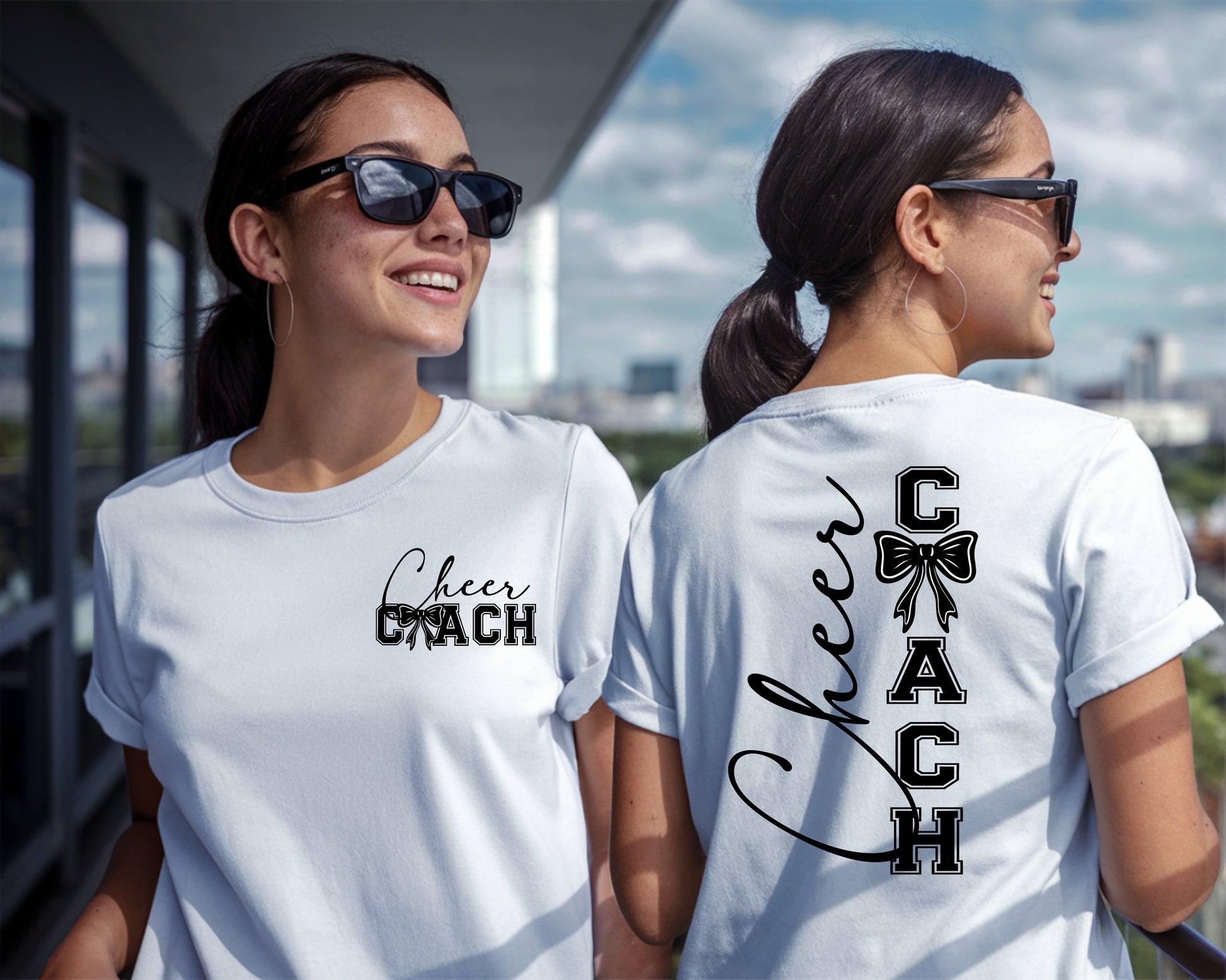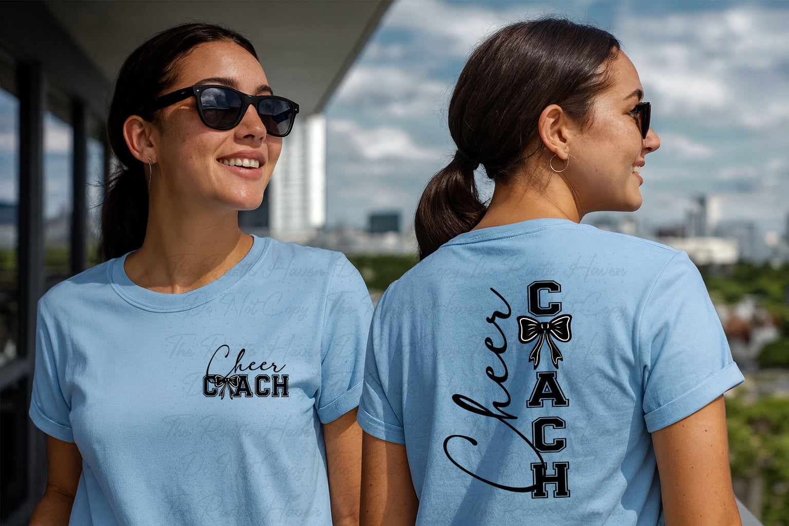 Cheer Coach T-Shirt – Stylish Cheerleading Coach Tee with Bow Design