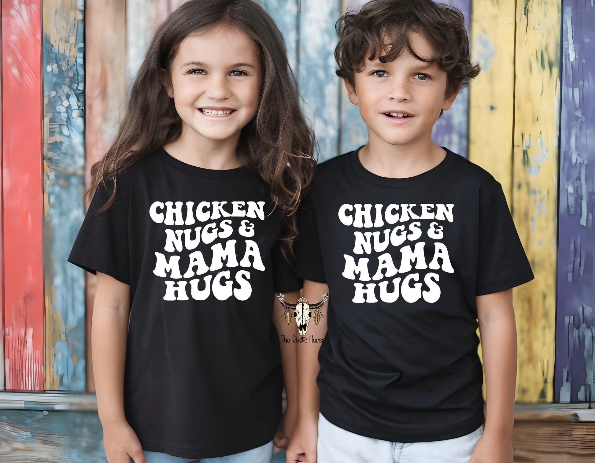 Get ready to add some fun to your wardrobe with our Chicken nugs & mama hugs t shirt! Made from comfortable materials, this shirt celebrates both your love for chicken nuggets and your mama's endless hugs. Perfect for any casual occasion, you'll be the talk of the town with this quirky and playful t shirt!