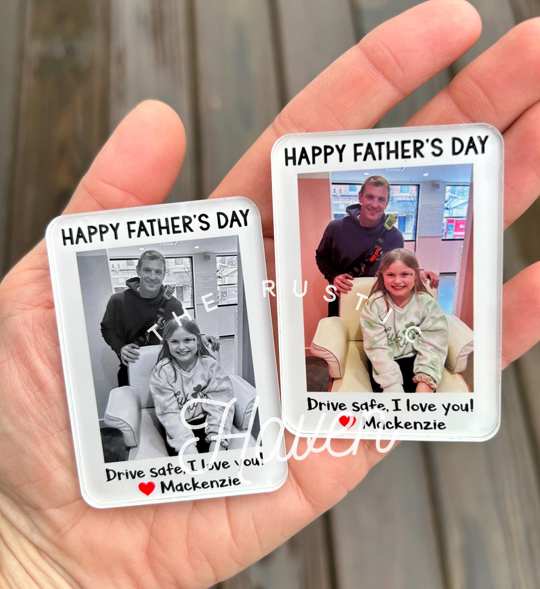Keep Dad's most cherished memories close during every drive with our Customized Father's Day Visor Clip. This thoughtful accessory attaches easily to any vehicle visor, displaying your personalized photo or message where he'll see it daily. A practical yet meaningful gift that shows your appreciation while adding a personal touch to his everyday travels.