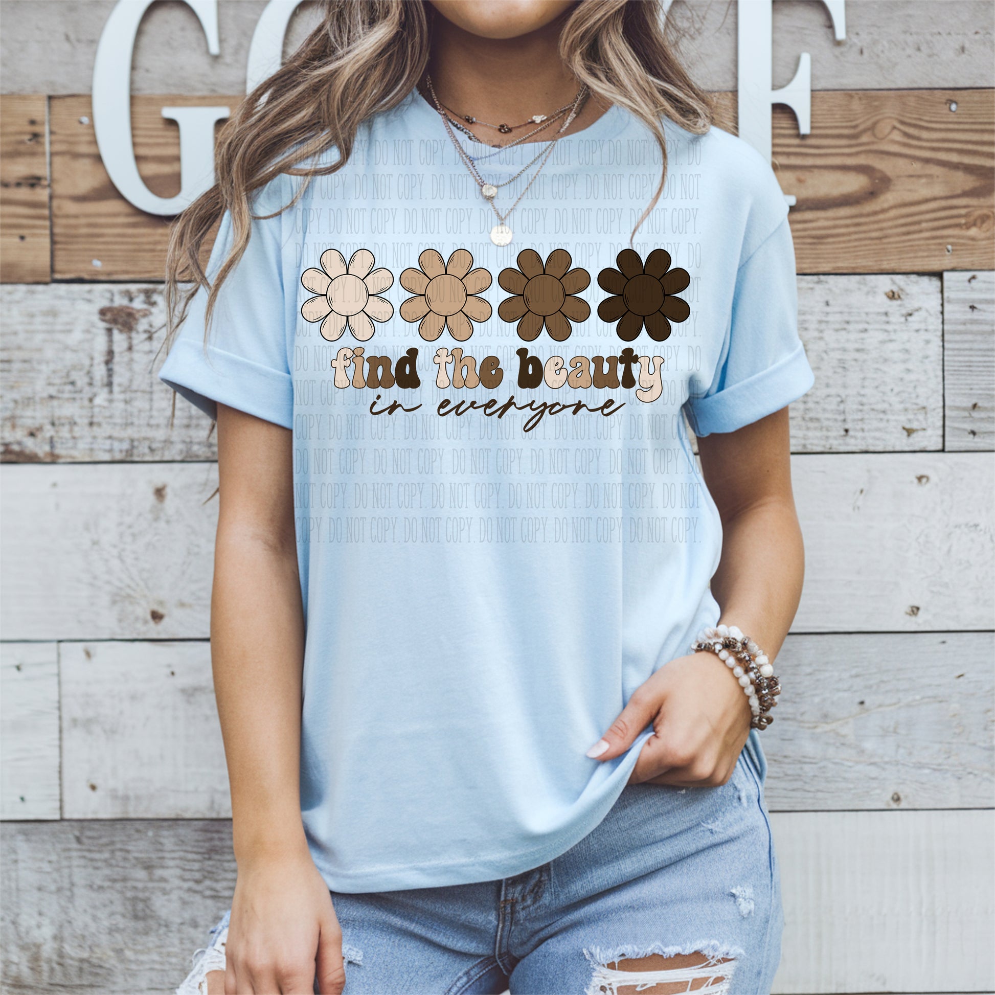 Showcase the beauty of diversity with our "Find in the beauty in everyone" T-shirt. Each flower represents a different color of skin, celebrating the unique and diverse beauty in all of us. Spread the message of inclusivity and positivity with this comfortable and stylish tee.