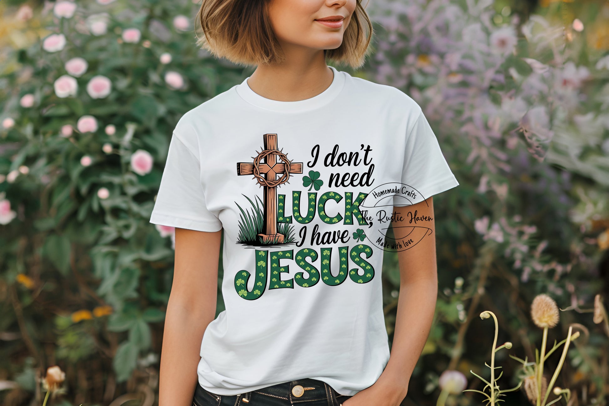 Experience the true lucky charm with our "I don't need luck I have Jesus" T-shirt! The perfect addition to your St. Patrick's Day celebration, this shirt proudly displays your faith while also bringing you blessings and good fortune. Don't rely on luck, rely on Jesus!