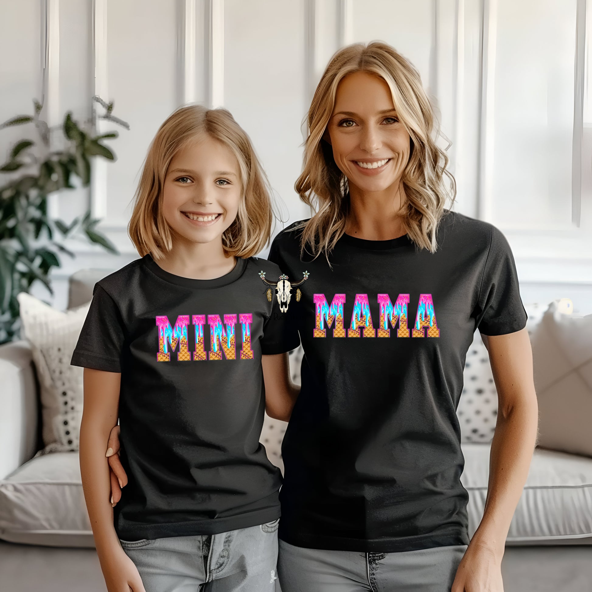 Show off your sweet side with our Adorable Ice cream Mama and Mini t-shirts! These matching t-shirts are perfect for any mother and child duo, bringing a playful and stylish touch to any outfit. Enjoy the comfort and charm of our unique design, and bond with your little one in the sweetest way possible. Mama listed under Womans and Mini listed under girls t-shirts!