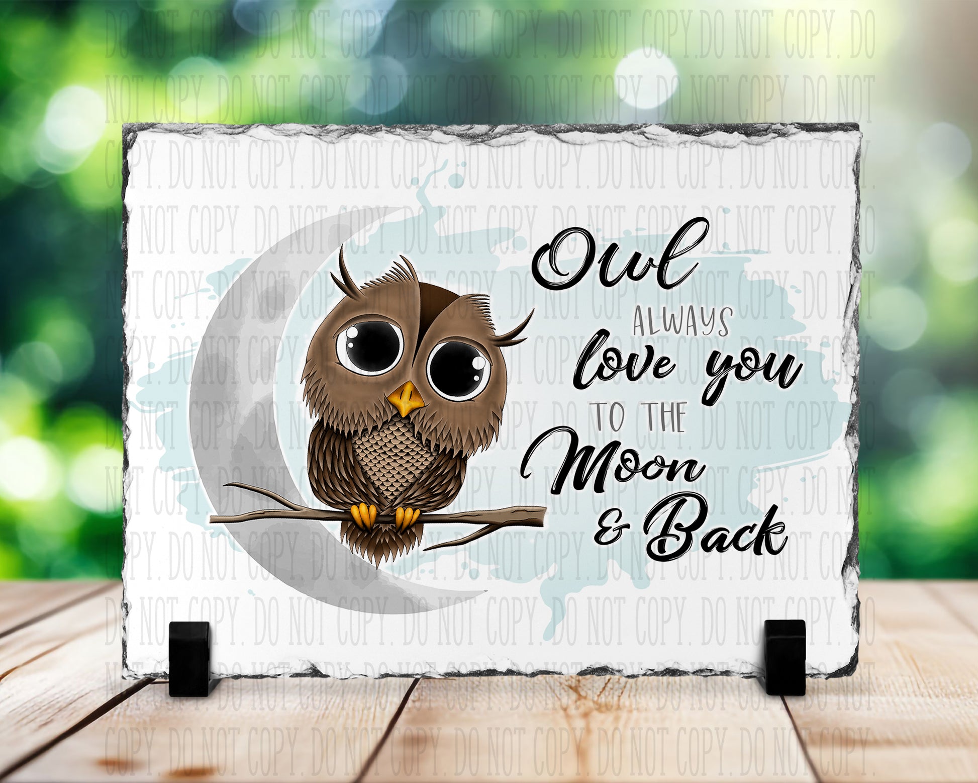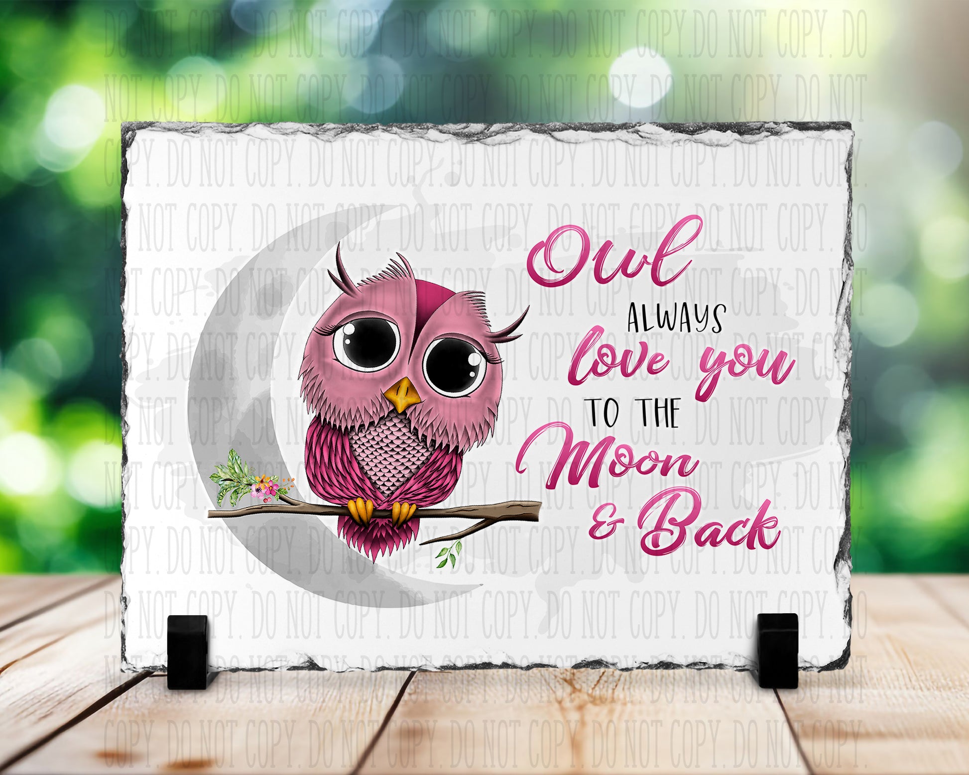 This slate features a heartfelt message, "Owl Always Love You To The Moon And Back", available in 4 charming colors. Show your love with this thoughtful gift.