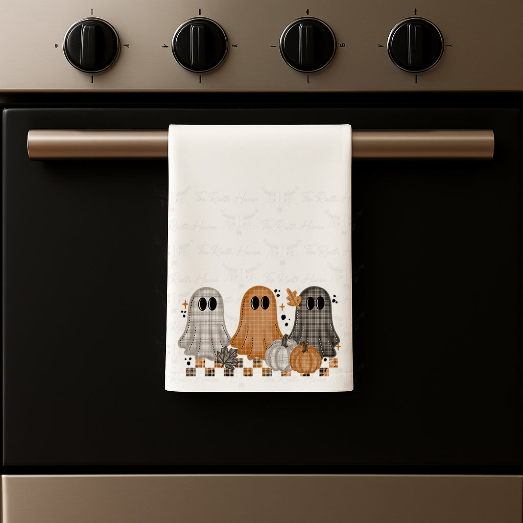 Plaid Ghost Trio Fall Kitchen Towel | Cute Halloween Tea Towel | Rustic Autumn Decor