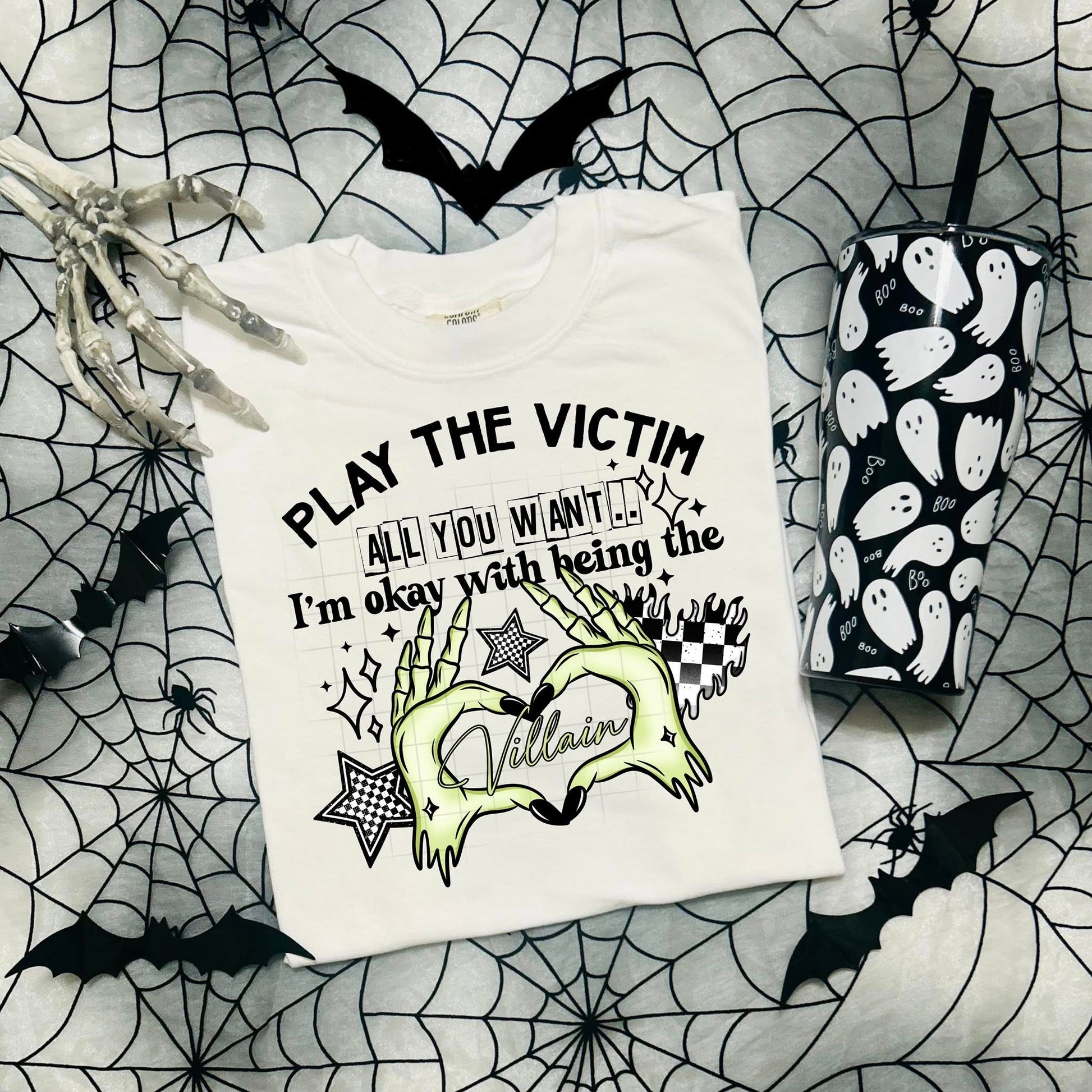 "Villain Heart Skeleton Hands Halloween Tee - Play the Victim Graphic T-Shirt"
