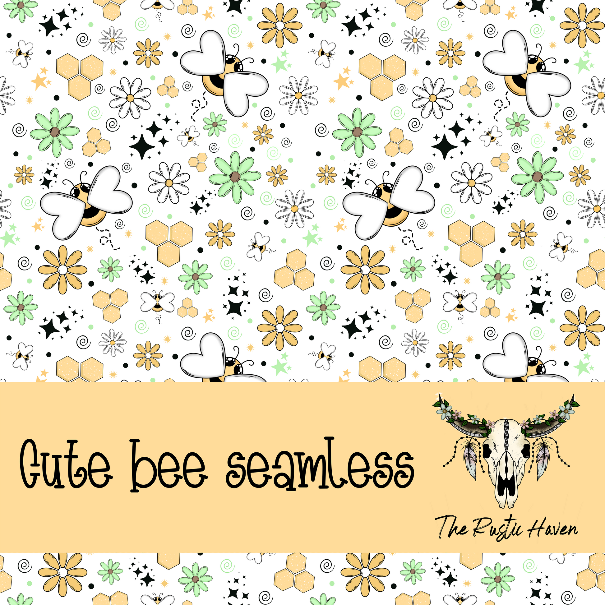 Whimsical Bee & Daisy Seamless Pattern | Honeycomb Floral Digital PNG
